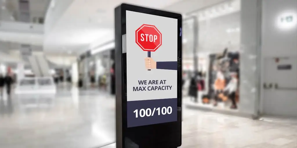 With any mobile device, employees can easily +/- visitors as they come and go. Live numbers can then show on a nearby digital signage display to keep waiting customers informed. Once at maximum occupancy, on-screen messaging can instantly be triggered to show custom content to those waiting to enter.