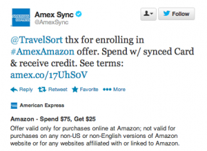 - American Express: Partnered with Twitter, AmEx is allowing card holders to purchase items via a hashtag, sometimes for a discount. Users sync their AmEx cards on their phones, tweet special #hashtags, and look for responses from @AmexSync with the confirmation #hashtag. Users then have 15 minutes from the response to tweet the confirmation #hashtag to finalize their purchase. In order to redeem a discount offer, users must do all this within the offer time, and will see the discount in their statement. In this case, dollars & social currency are both exchanged. AmEx has also incorporated discounts via Facebook & Foursquare. This campaign has generated social activity not only for AmEx, but their participating merchants, with over a quarter million tweets generated, over 40,000 users, and $11M total spent.
